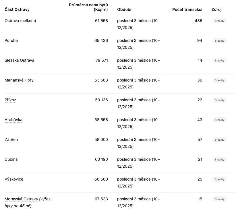 Průměrná cena za m2 bytu v Ostravě v roce 2025 byla: